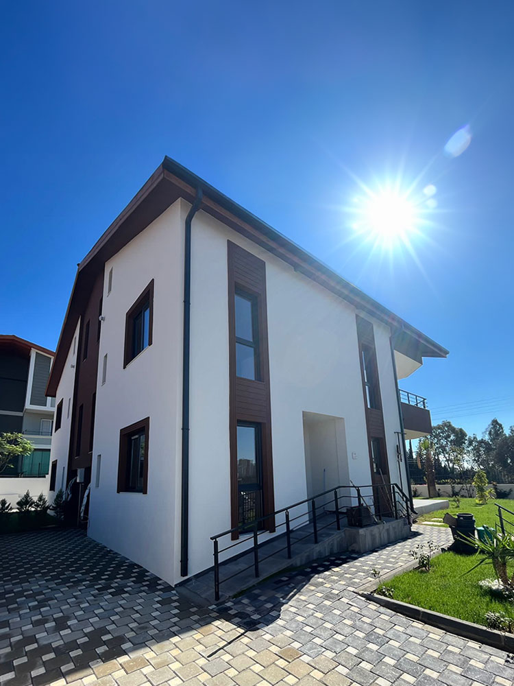 Her bir villa, oturma odasından doğrudan bahçeye erişim imkanı sunar. Bu özellik, sakinlere iç mekanlardan dışarıya rahatlıkla geçiş yapabilme şansı tanır. Geniş ve düzenli tasarlanmış bahçeler, açık havada keyifli zaman geçirmek için ideal bir ortam sunar.